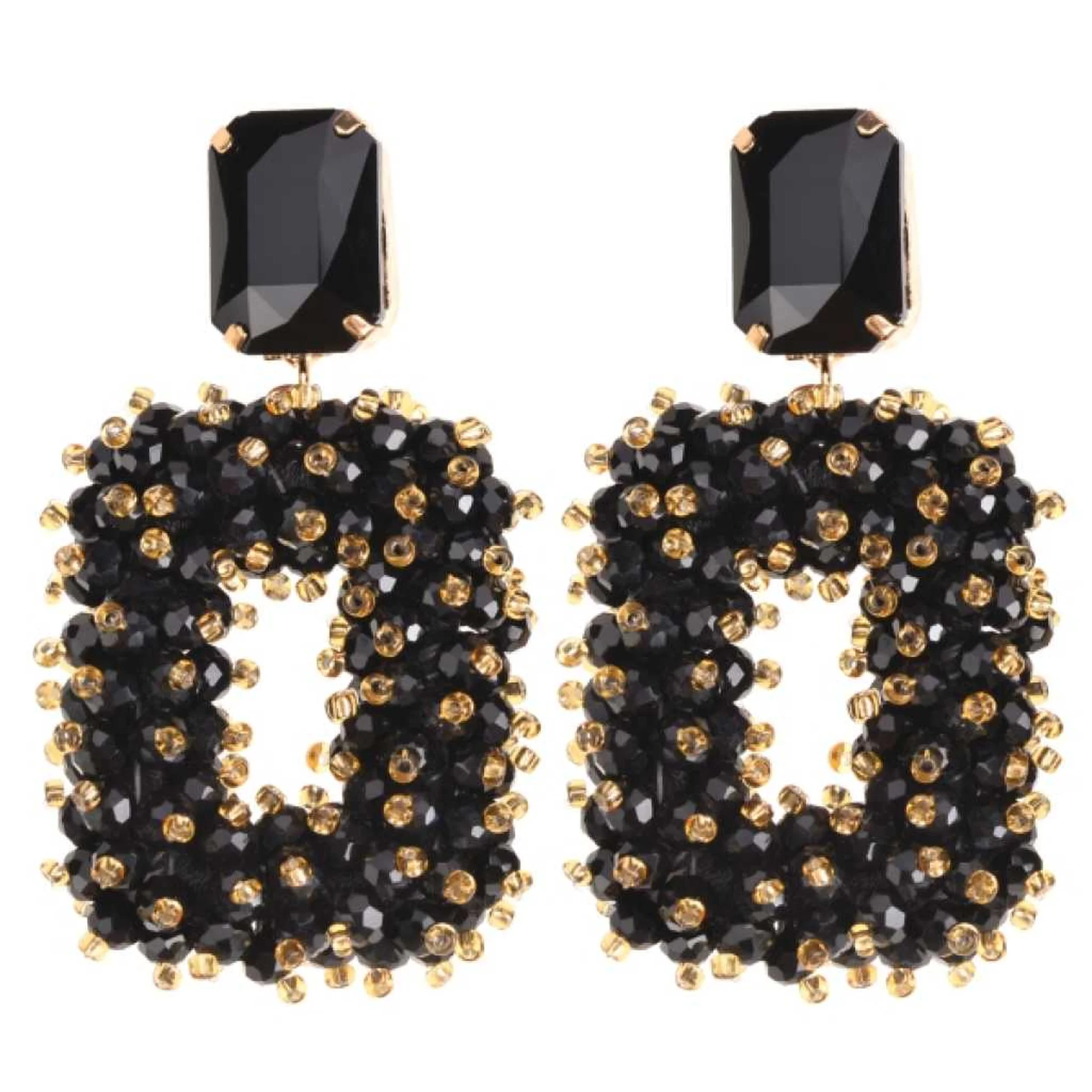 De Nala Earrings Gold combineren shiny acryl stones en kraaltjes in goud en zwart voor een moderne en speelse uitstraling. Deze oorbellen geven je look een unieke textuur en verfijnde glans.